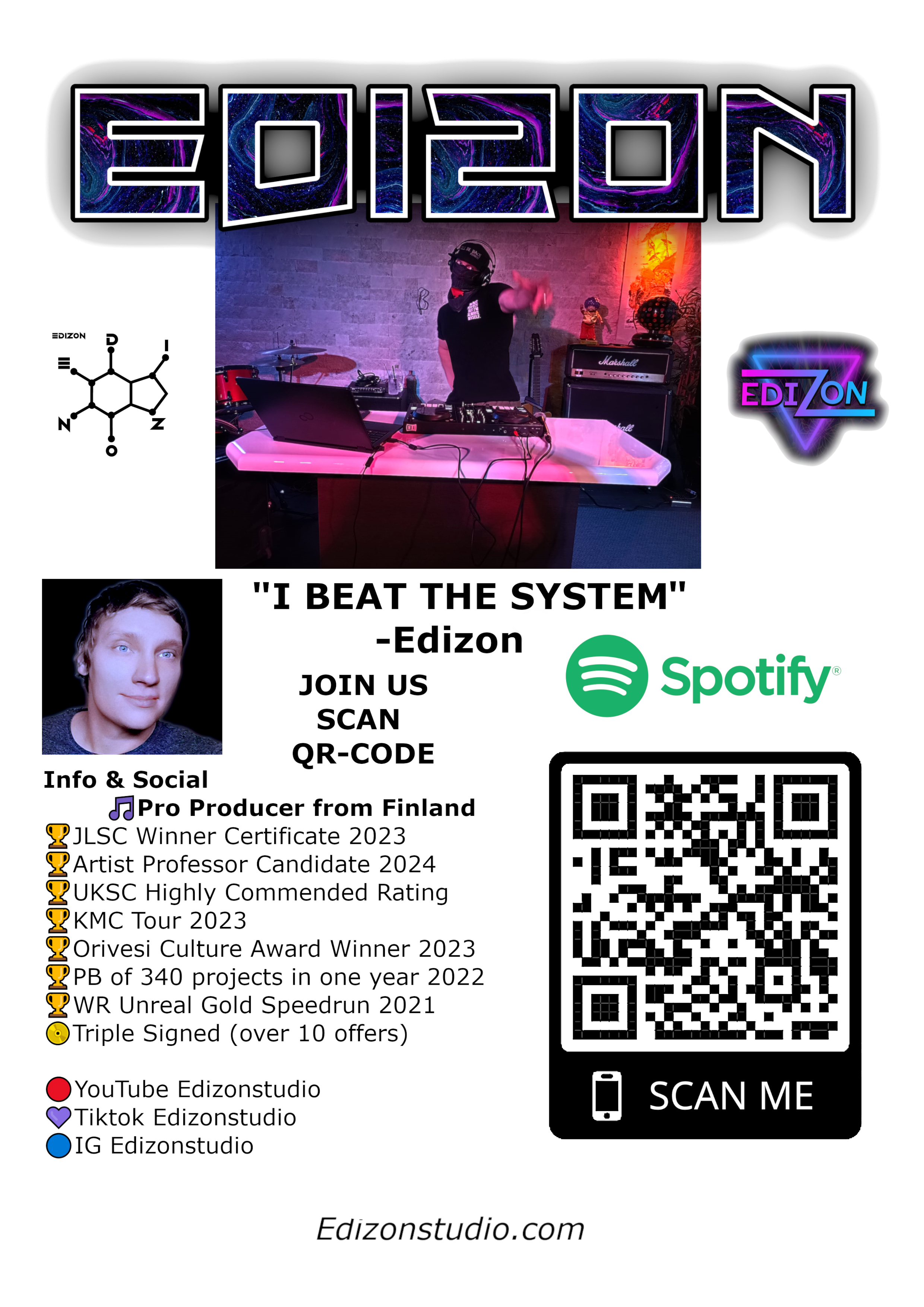 This is the official website of Music Producer / Artist Edizon. Here, you can find the most recent updates and follow along with my artistic journey.