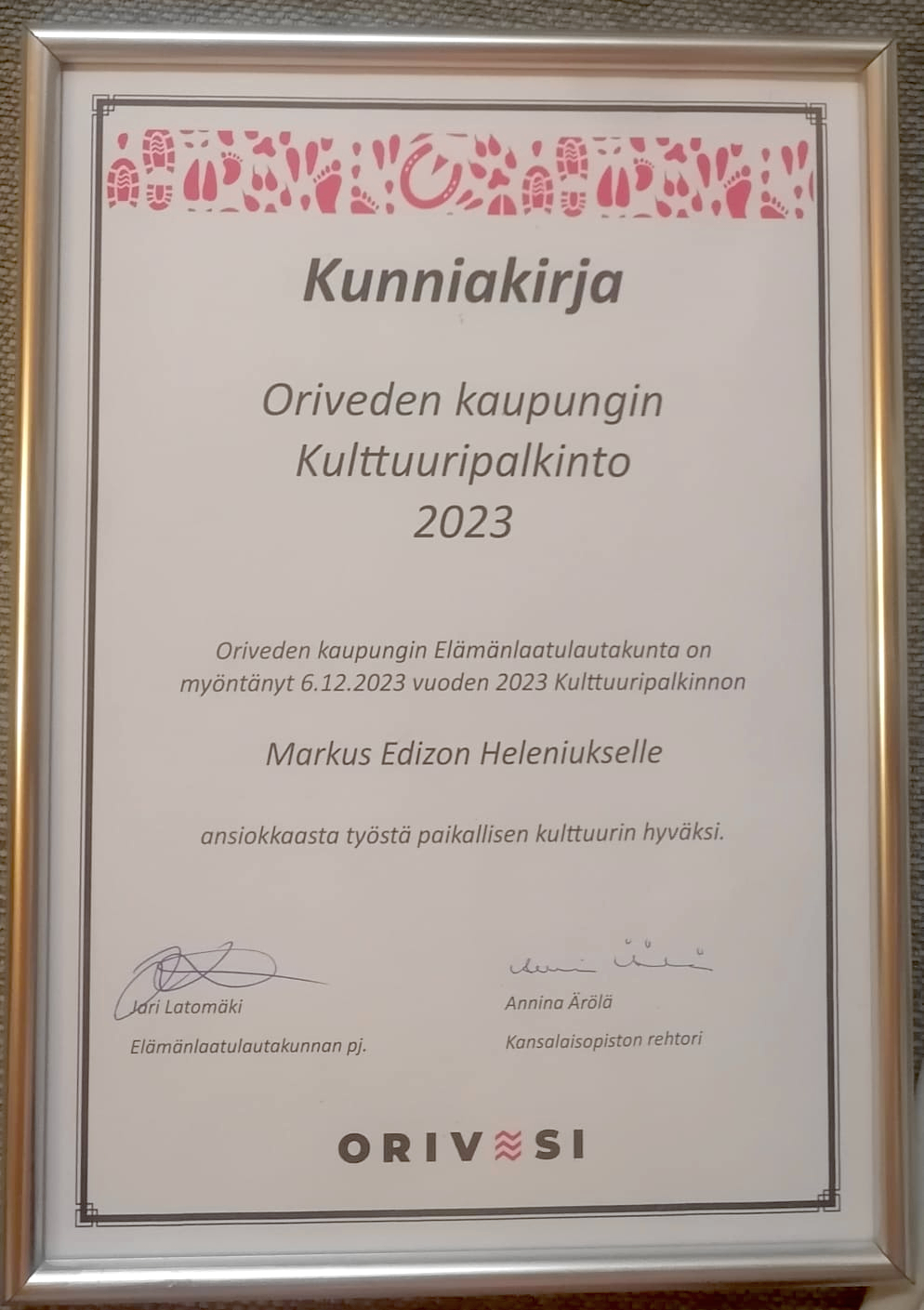 Markus Edizon Helenius the new Culture Award Winner 2023